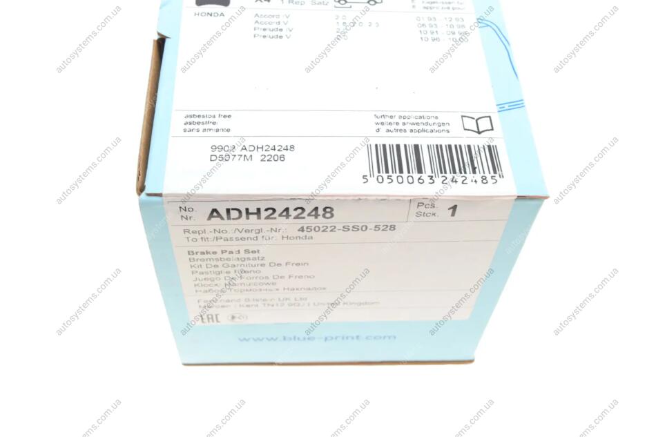 Колодки гальмівні (передні) Honda Accord V 92-98/Prelude III/IV/V 86-01/Rover 600 93-00 Blue-print ADH24248 – преимущества покупки в интернет-магазине Autosystems
