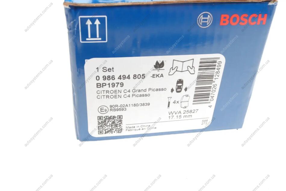 Тормозные колодки, дисковые. BOSCH 0 986 494 805