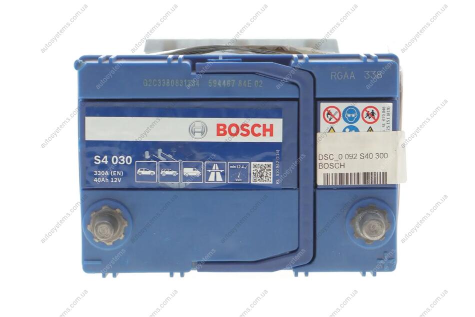 Акумуляторна батарея 40Ah/330A (187x140x227/+R/B01) Азія / дата виробництва 2023 рік. BOSCH DSC_0 092 S40 300