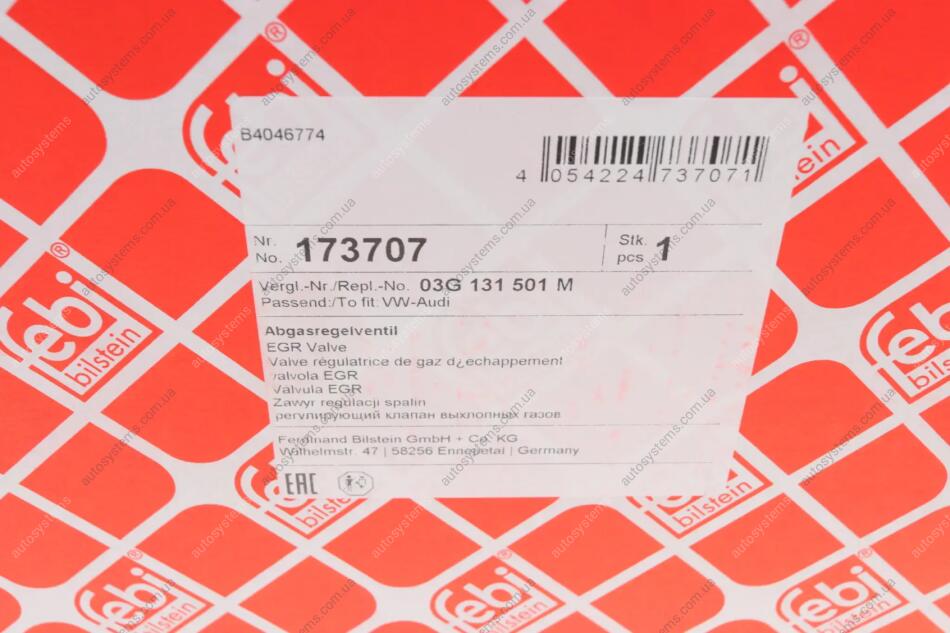 Клапан EGR VW Caddy 1.9TDI 77KW 03-10 FEBI BILSTEIN 173707