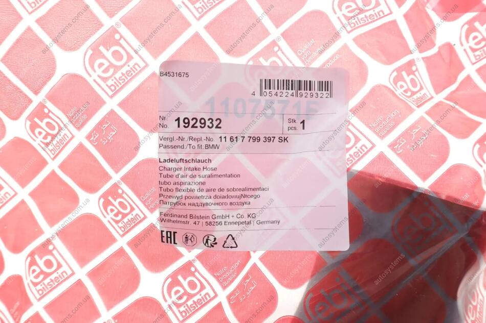 Трубка нагнетаемого воздуха FEBI BILSTEIN 192932