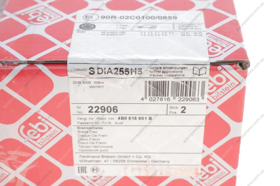Диск гальмівний (задній) Audi A6 97-05 (255x10) FEBI BILSTEIN 22906
