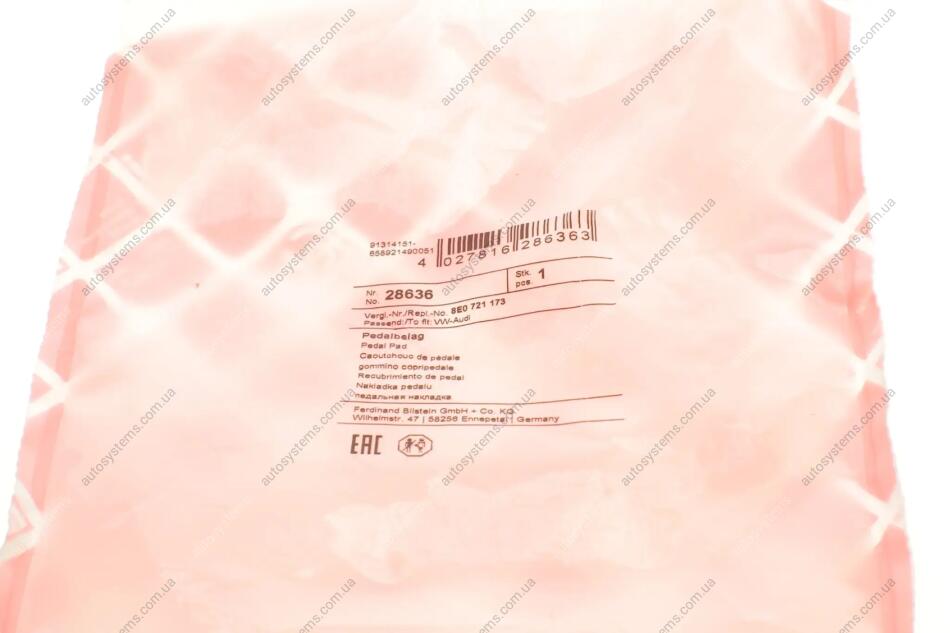 Как оформить и оплатить заказ на деталь Накладка педалі зчеплення VW T5 03-15 FEBI BILSTEIN 28636?