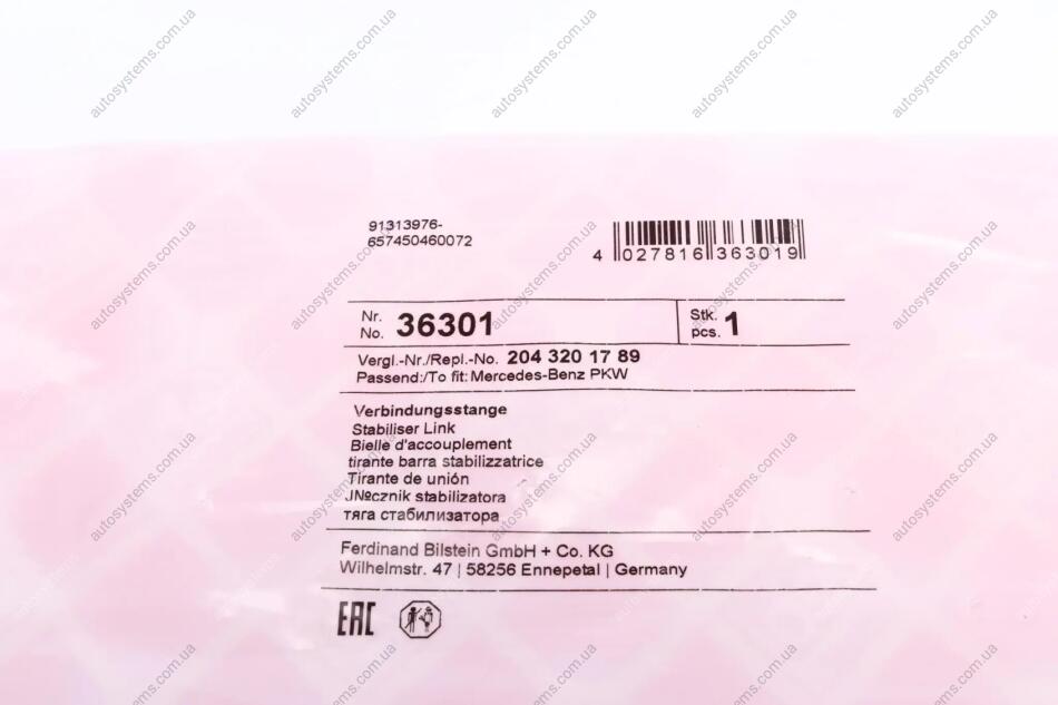 Тяга стабілізатора (переднього) (L) MB C-class (W204)/E-class (C207) 07- (L=306,65mm) FEBI BILSTEIN 36301