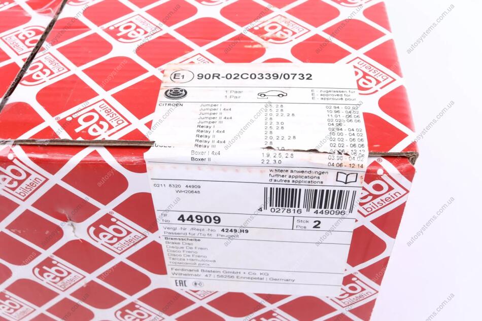 Диск гальмівний (передній) Fiat Ducato/Peugeot Boxer 1.8t 94- (300x24) FEBI BILSTEIN 44909