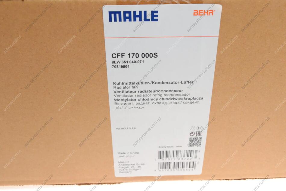 Вентилятор радіатора Audi A3/Skoda Octavia/VW Caddy/Golf V/VI/Passat 1.2-3.6 03- MAHLE / KNECHT CFF 170 000S