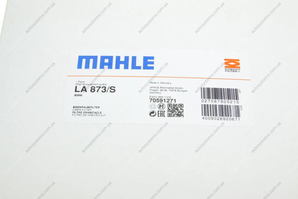 Фільтр салону BMW X3 (F25)/X4 (F26) 10-18 (к-кт 2шт.) MAHLE / KNECHT LA 873/S