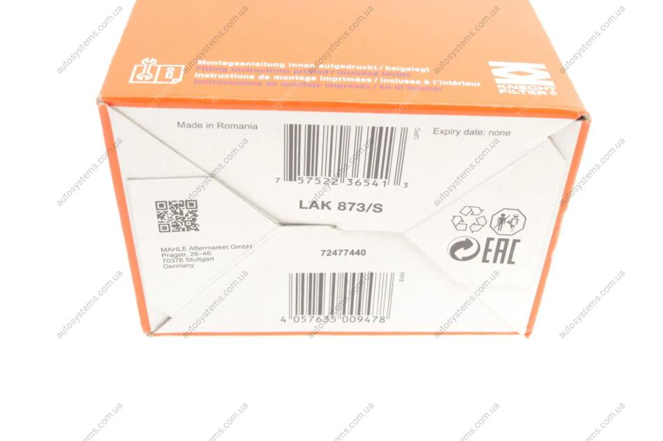 Фильтр салона MAHLE / KNECHT LAK873/S