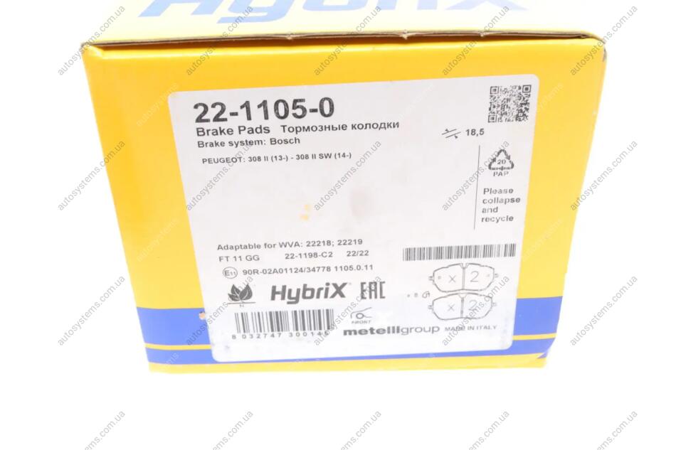 Колодки гальмівні (передні) Peugeot 308 II 13-/508 II 18- Metelli 22-1105-0