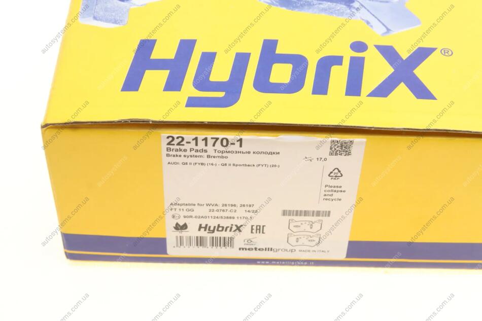 Колодки гальмівні (передні) Audi Q5 18- Metelli 22-1170-1