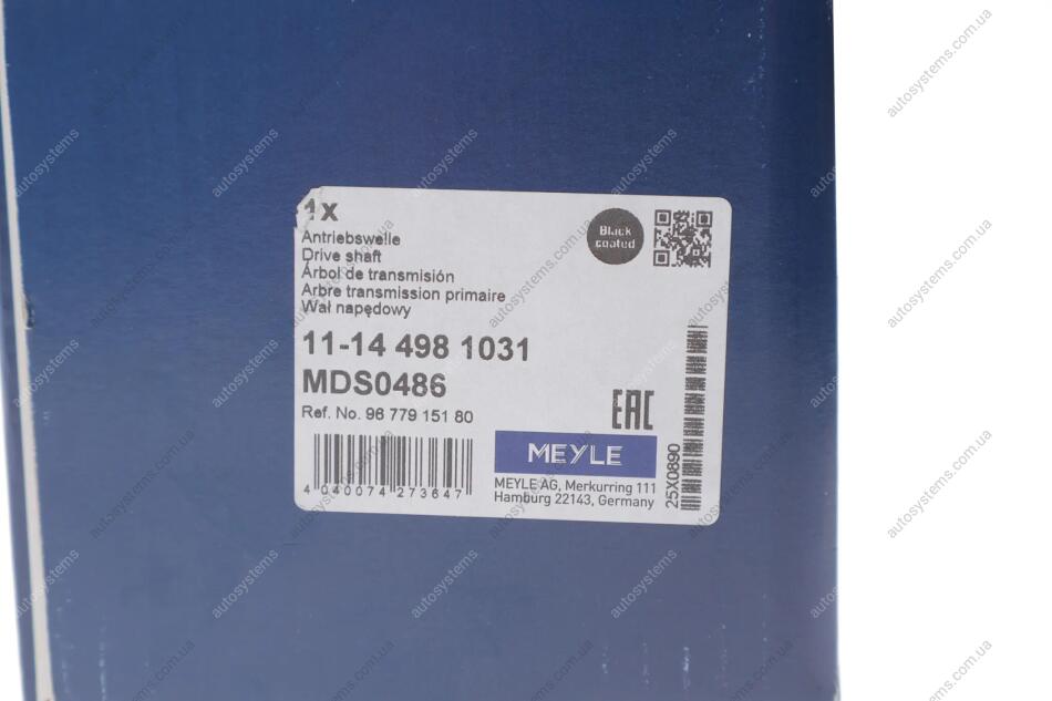 Піввісь (передня) Citroen C4/Peugeot 3008 14- (L) (28x24/688) MEYLE 11-14 498 1031