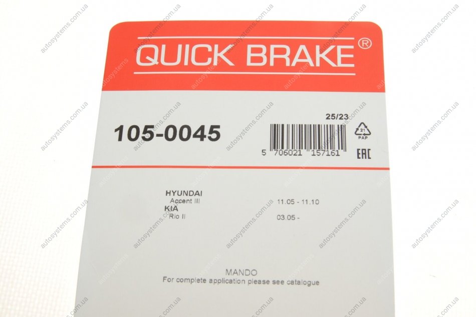 Комплект пружинок колодок ручника Hyundai Accent/Kia Rio 05-11 Quick-brake 105-0045