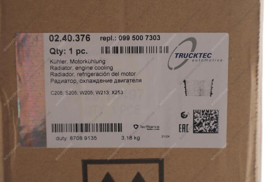 Интернет-магазин Автомобильные Системы – это один из надежных поставщиков качественных запчастей для грузовиков и других транспортных средств. У нас можно купить Радиатор, охлаждение двигателя TRUCKTEC 02.40.376 на выгодных условиях по цене 5347 грн. Оригинальный товар подходит на грузовые авто -. Предлагаем доступную цену и гарантию на все позиции.