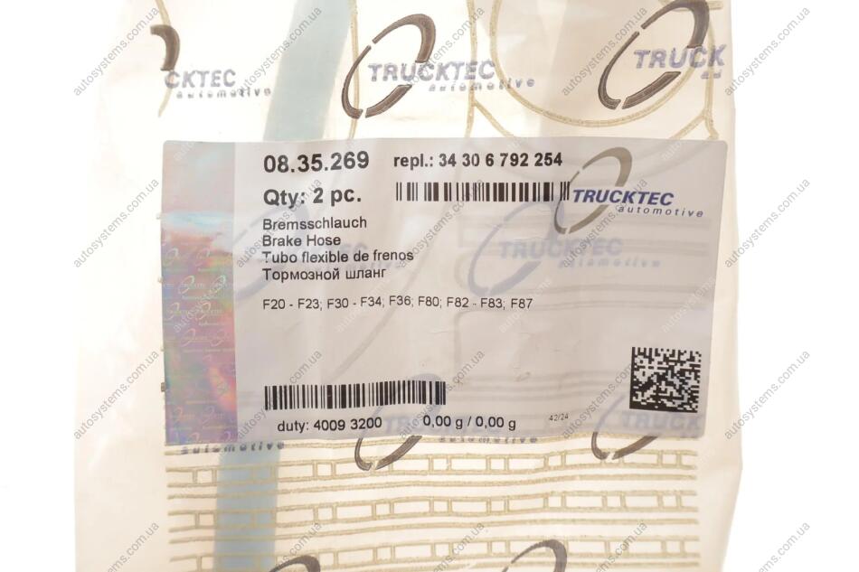 Шланг гальмівний (передній) BMW 3 (F30/F80)/4 (F36/F33/F83) 11- TRUCKTEC 08.35.269 – преимущества покупки в интернет-магазине Autosystems