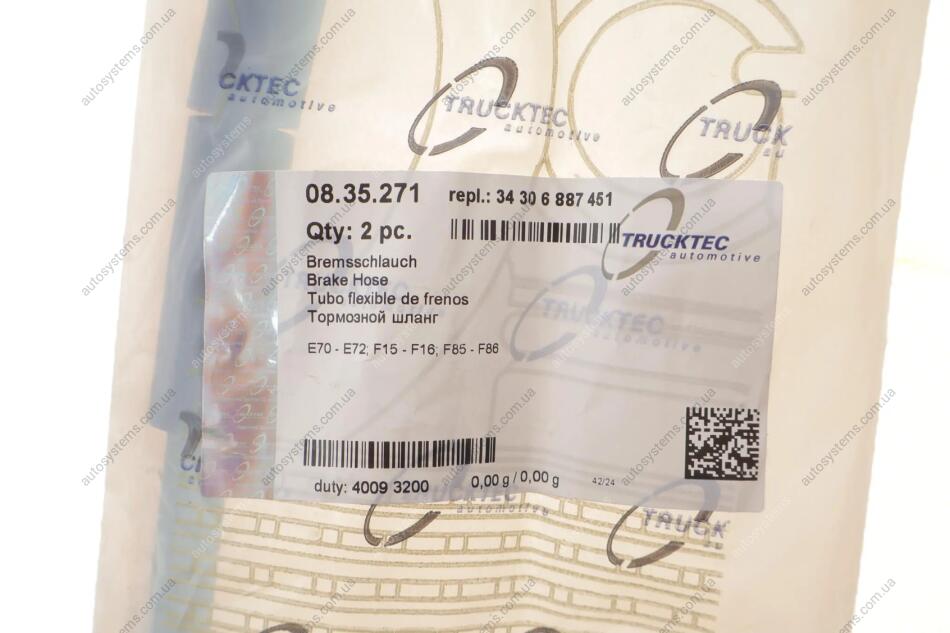 Шланг гальмівний (передній) BMW X5 (E70/F15)/X6 (E71/E72) 06-19 TRUCKTEC 08.35.271