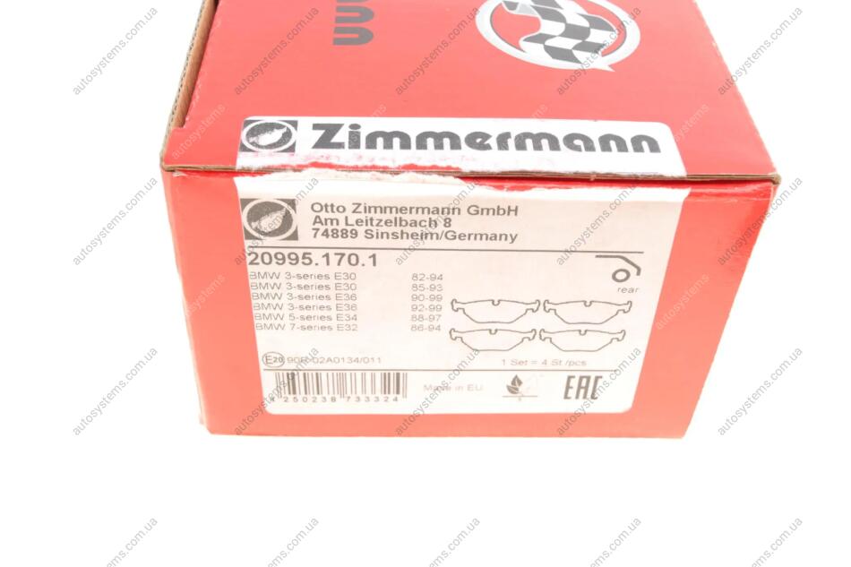 Колодки гальмівні (задні) BMW 3 (E30/E36) 82-98/5 (E34) 87-96/7 (E32) 86-94 (Ate-Teves) ZIMMERMANN 20995.170.1