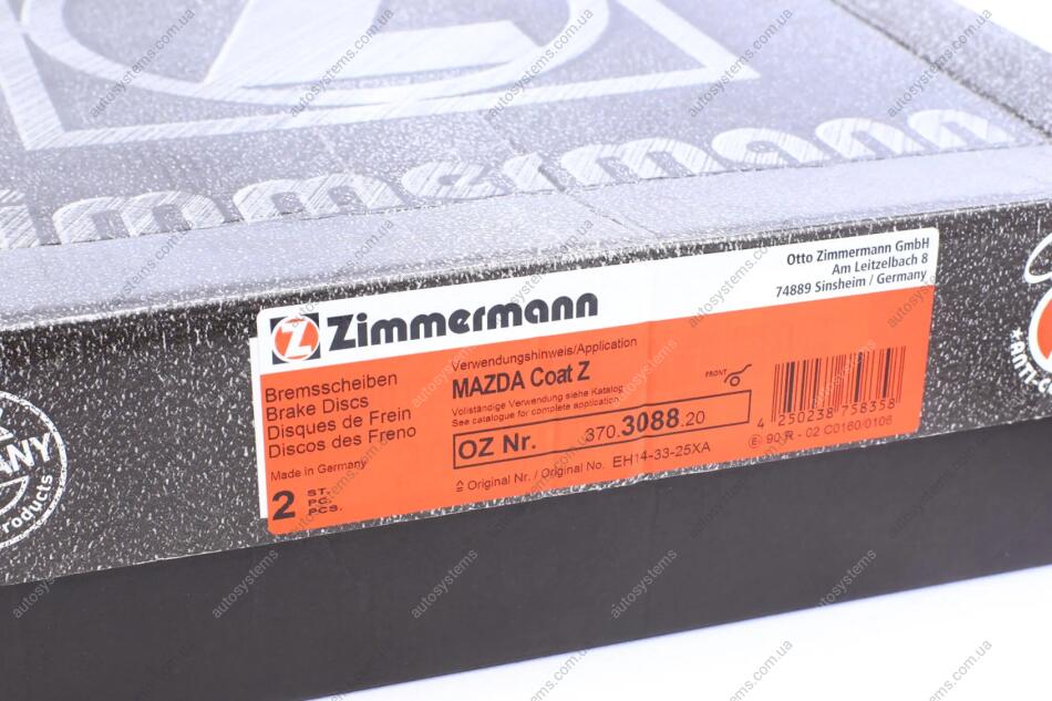 Диск гальмівний (передній) Mazda CX-7/CX-9 06- (320x28) (з покриттям) (вент.) ZIMMERMANN 370.3088.20
