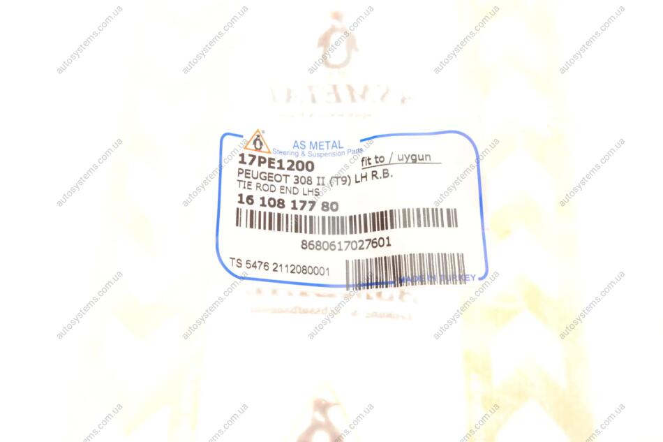 Наконечник тяги рульової (L) Citroen C4 Picasso 13-/C5 Aircross/Berlingo/Peugeot 508 18-/5008/308 13- ASMETAL 17PE1200