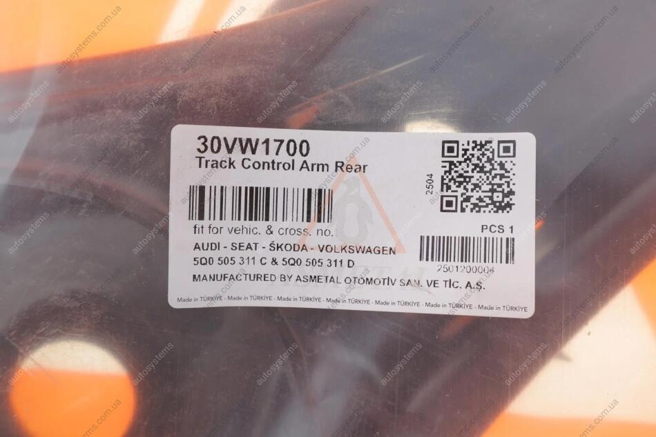 Важіль підвіски (задній/знизу) Audi A3/VW Golf VII 12- ASMETAL 30VW1700