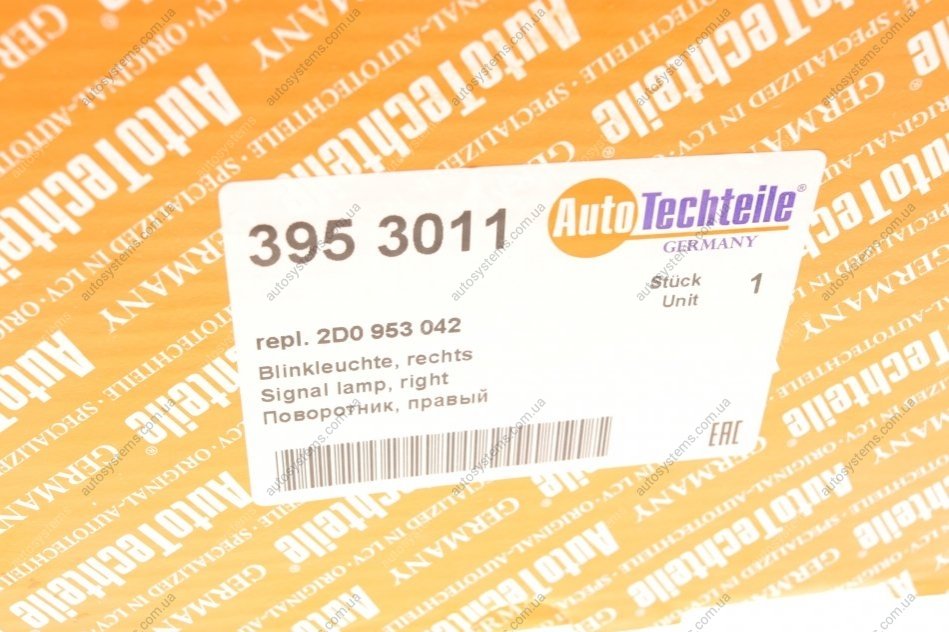 Поворот передній VW LT 96-06 (R) (жовтий) (без патрона) (9530.11) AUTOTECHTEILE 395 3011 - переваги покупки в інтернет-магазині Autosystems