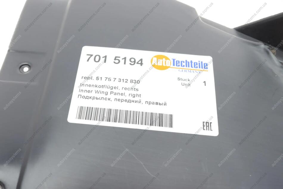 Підкрилок (передній/передня частина) BMW 5 (F10) 10-17 (R) AUTOTECHTEILE 701 5194 - переваги покупки в інтернет-магазині Autosystems