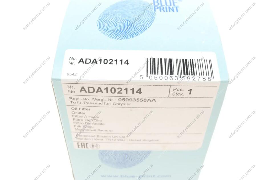 Фільтр масляний Jeep Cherokee 2.5-2.8CRD 01-08 Blue-print ADA102114