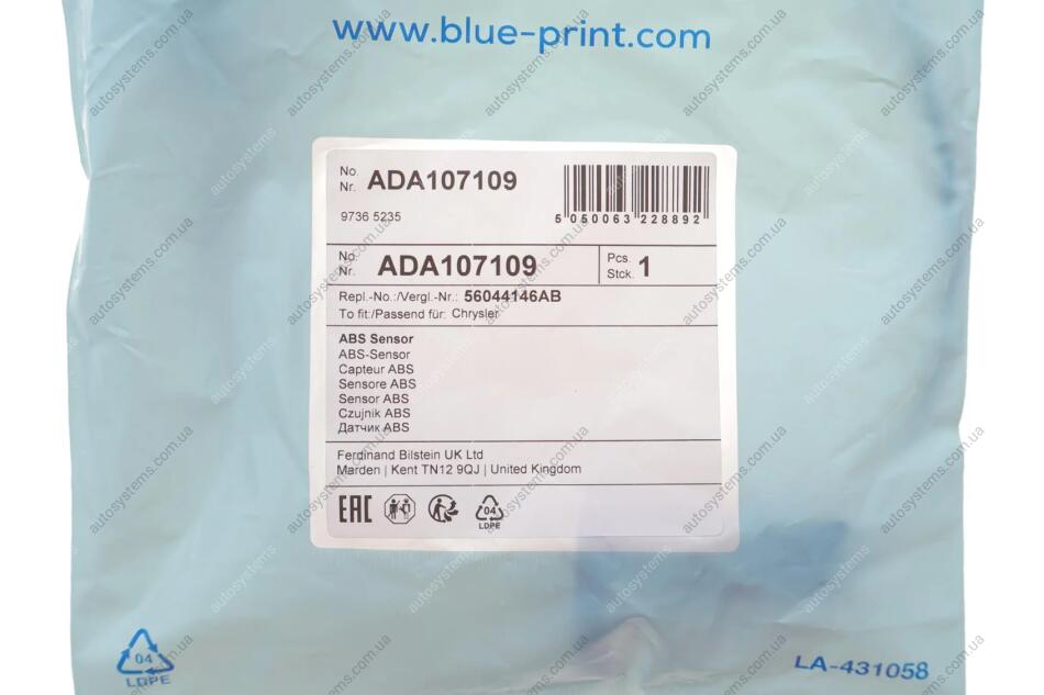 Датчик АБС Blue-print ADA107109 - переваги покупки в інтернет-магазині Autosystems