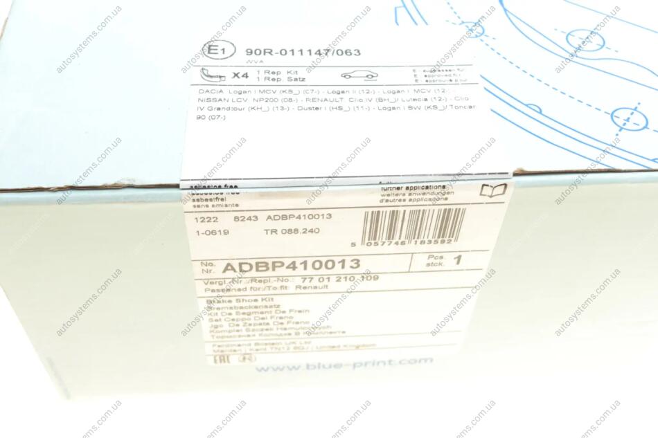 Колодки гальмівні (задні) Renault Kangoo 08- (барабанні) (230x42) Blue-print ADBP410013