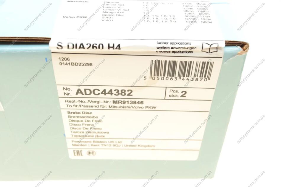 Диск гальмівний (задній) Mitsubishi Carisma/ Space Star/Volvo S40 95- (260x10) Blue-print ADC44382