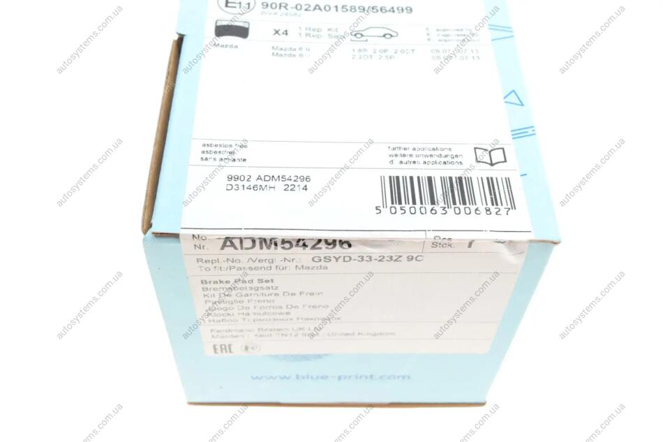 Колодки гальмівні (передні) Mazda 6 07-13 Blue-print ADM54296