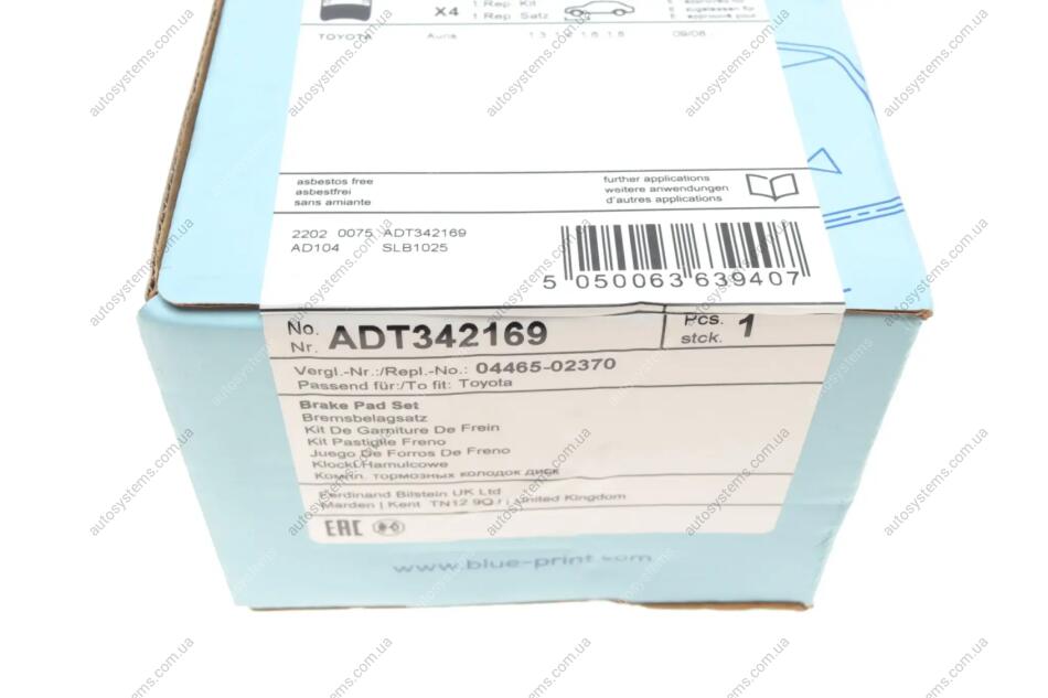 Колодки гальмівні (передні) Toyota Auris 06-12/Corolla 06-14 Blue-print ADT342169