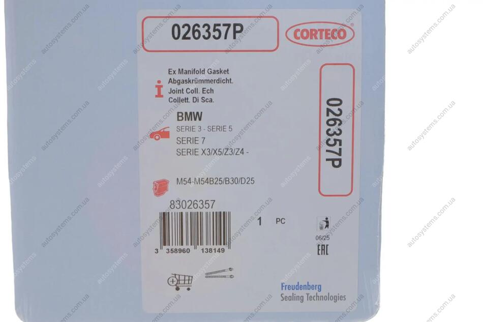 Прокладка выпускного коллектора CORTECO 026357P