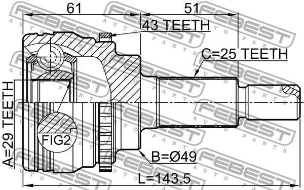 Шарнир равных угловых скоростей (ШРУС) FEBEST 0710-RS413A43