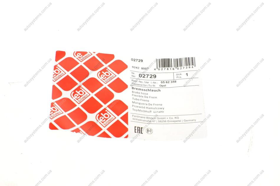 Шланг гальмівний (передній) Opel Ascona C/Astra F/Calibra A/Kadett E/Vectra A 81-05 (355mm) FEBI BILSTEIN 02729