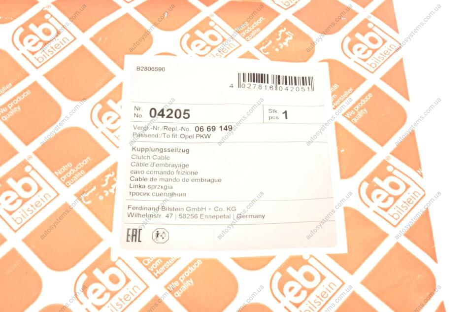 Трос зчеплення Opel Omega A 84-96 (1210 мм) FEBI BILSTEIN 04205 - переваги покупки в інтернет-магазині Autosystems