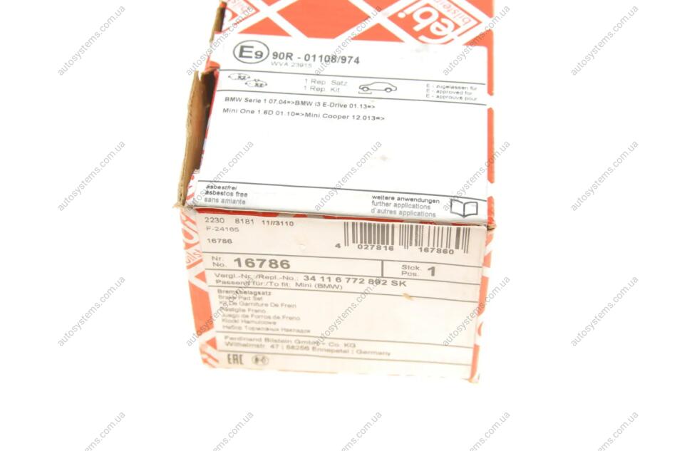 Колодки гальмівні (передні) BMW 1 (E81/E82/E87/E88) 04-13/2 (F45) 14-18 FEBI BILSTEIN 16786