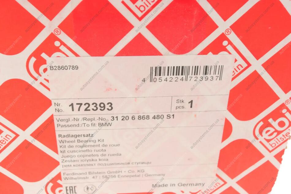 Підшипник маточини (передньої) BMW 5 (F10/F11)/6(F12/F13)/7(F01-F04)/X3(F25)/X4(F26) 09-18 FEBI BILSTEIN 172393