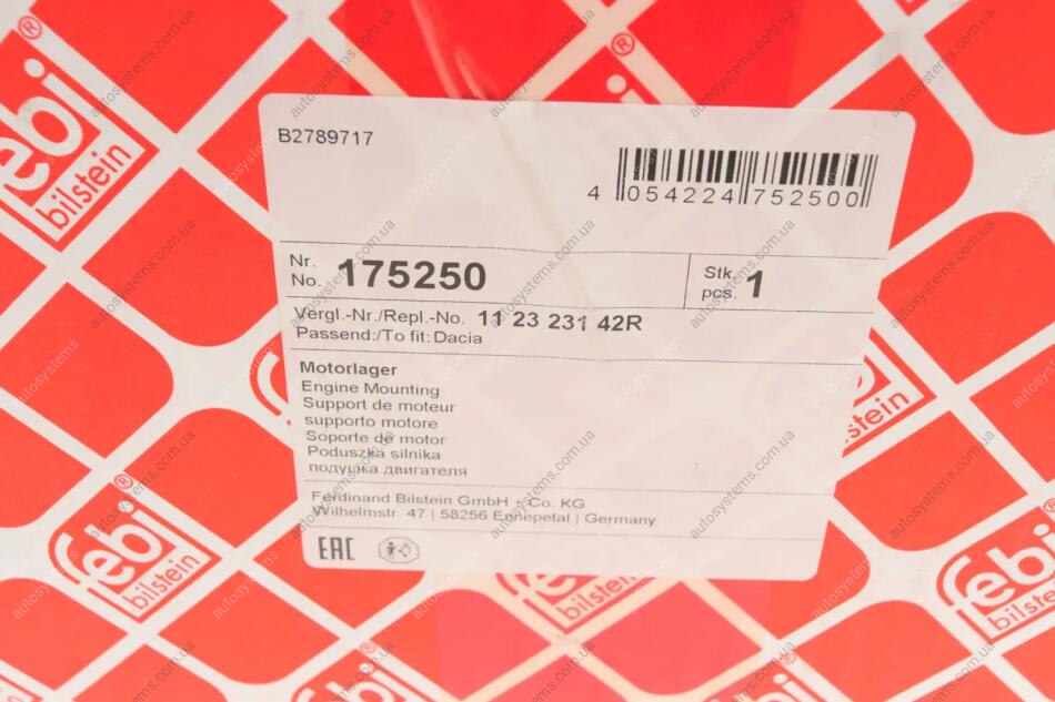 Подушка двигуна (R) Renault Logan/Sandero 1.2 04- FEBI BILSTEIN 175250 - переваги покупки в інтернет-магазині Autosystems