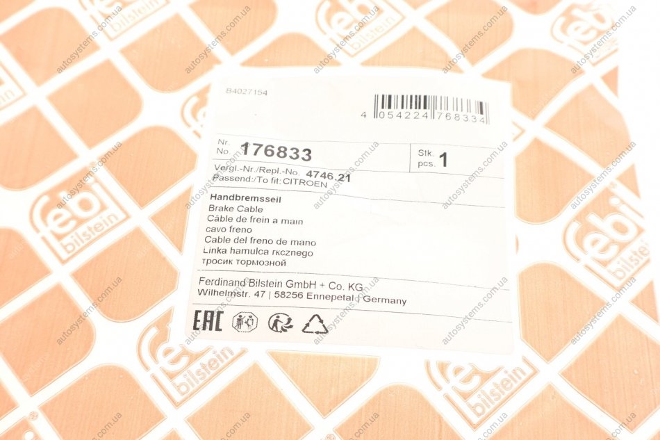 Трос ручника Citroen C4 Picasso 06-13 FEBI BILSTEIN 176833