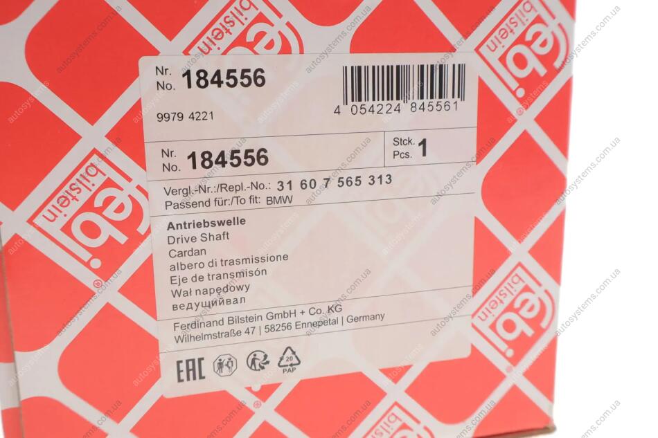 Піввісь (передня) BMW X5 (E53) 00- (L) (30x27x586) M54/M57/M62/N62 FEBI BILSTEIN 184556
