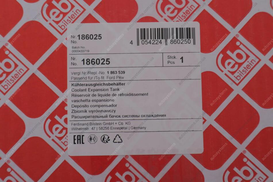 Autosystems є найкращим рішенням для придбання запчастин для вантажівок та інших видів транспорту. Компанія пропонує широкий вибір деталей та вигідні умови замовлення. Бачок розширювальнийFord Mondeo V 14- FEBI BILSTEIN 186025 відповідає оригіналу 1863539 та встановленим стандартам. Підходить на вантажні автомобілі -.