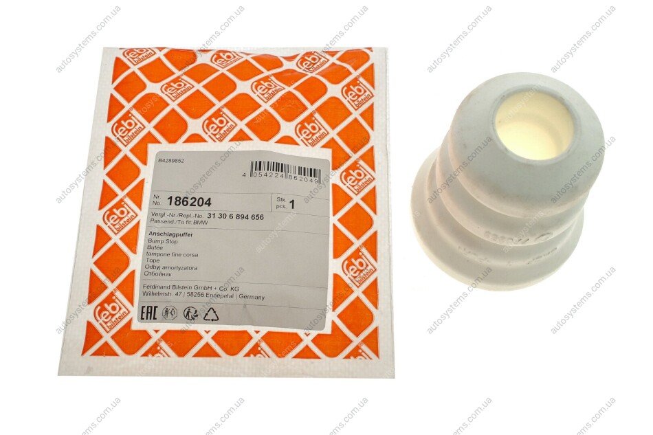Autosystems є найкращим рішенням для придбання запчастин для вантажівок та інших видів транспорту. Компанія пропонує широкий вибір деталей та вигідні умови замовлення. Відбійник амортизатора (переднього) BMW 3 (G20/G80/G28) 1.6-3.0DH 18- B47/B48/B57 FEBI BILSTEIN 186204 відповідає оригіналу 31306894656 та встановленим стандартам. Підходить на вантажні автомобілі -.