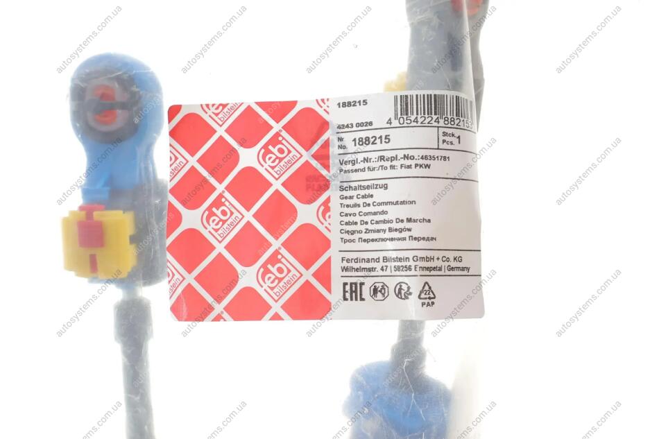Autosystems є найкращим рішенням для придбання запчастин для вантажівок та інших видів транспорту. Компанія пропонує широкий вибір деталей та вигідні умови замовлення. Трос куліси Fiat Doblo 1.4/1.6D/2.0D 10- (L1=11086/1481mm/L2=1012/1330mm) FEBI BILSTEIN 188215 відповідає оригіналу та встановленим стандартам. Підходить на вантажні автомобілі -.