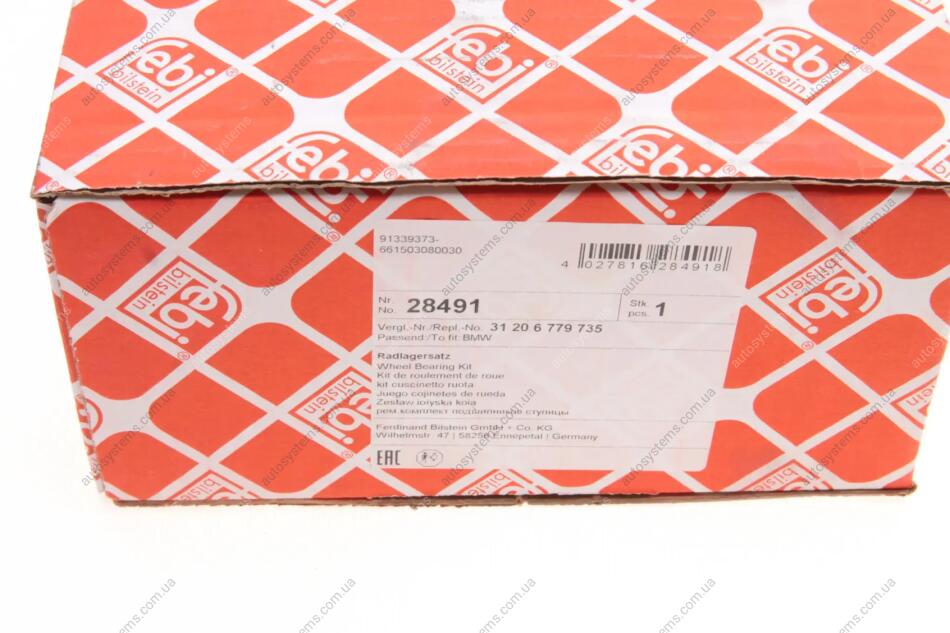 Підшипник маточини (передньої) BMW X5 (E70/F15/F85)/X6 (E71/E72/F16/F86) 2.0D-4.8 06- FEBI BILSTEIN 28491