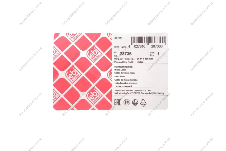 Трос ручника, правый FEBI BILSTEIN 28736