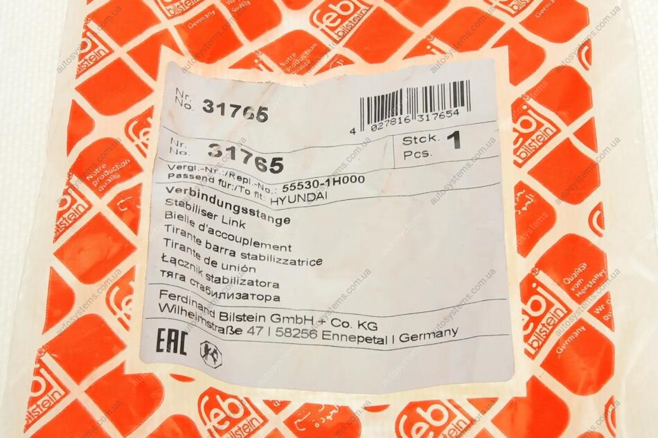 Тяга стабілізатора (заднього) Kia Ceed 06- (L=170 мм) FEBI BILSTEIN 31765