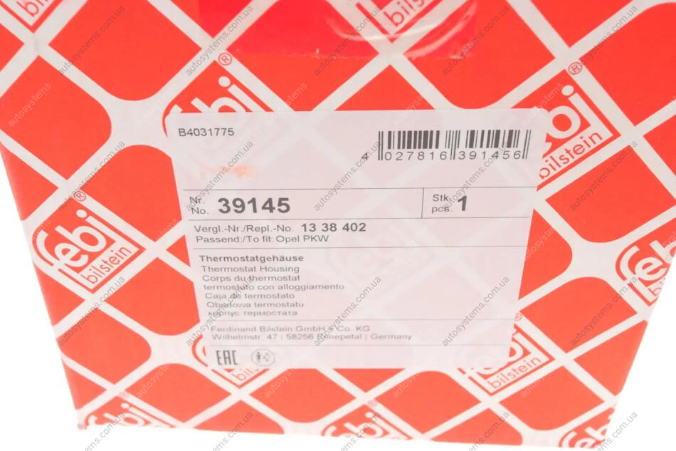 Термостат Opel Astra/Vectra 1.6/1.8 00- (105°) (з корпусом) FEBI BILSTEIN 39145