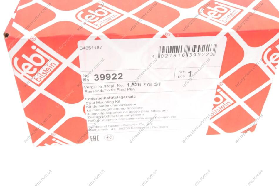 Подушка амортизатора (переднього) + підшипник Ford Fiesta 03- FEBI BILSTEIN 39922