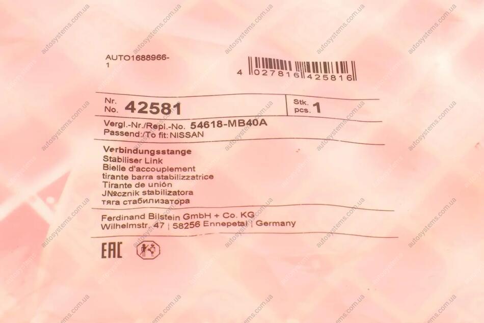 Стабілізатор (стійки). TERRANO II FEBI BILSTEIN 42581