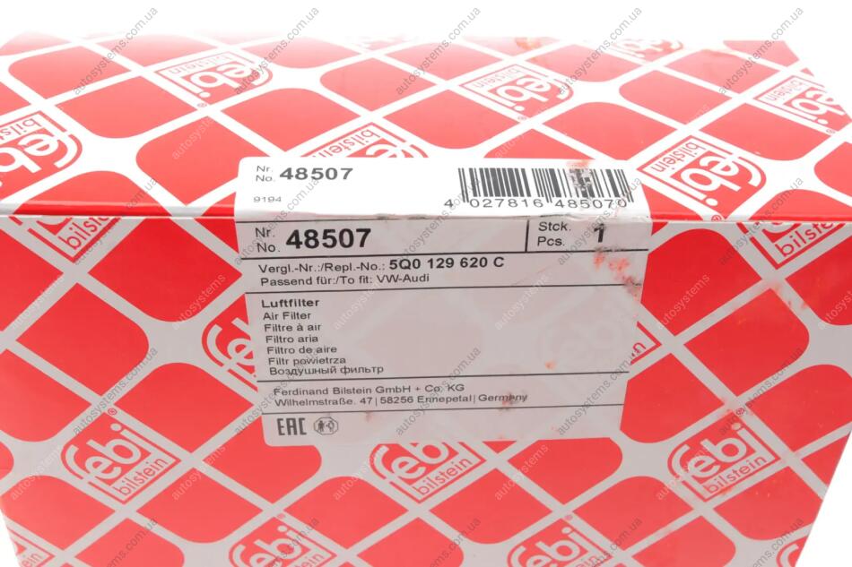 Фільтр повітряний VW Passat B8/Golf 1.6/2.0TDI 14-/Skoda Octavia 1.6-2.0 Tdi 1.8 TSi 12- FEBI BILSTEIN 48507